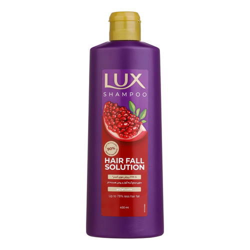 شامپو ضد ریزش مو لوکس، سازگار با انواع مو، حاوی صمغ گیاه گوار و روغن هسته انار، با حجم 400 میلیلیتر مدل Hair Fall Solution