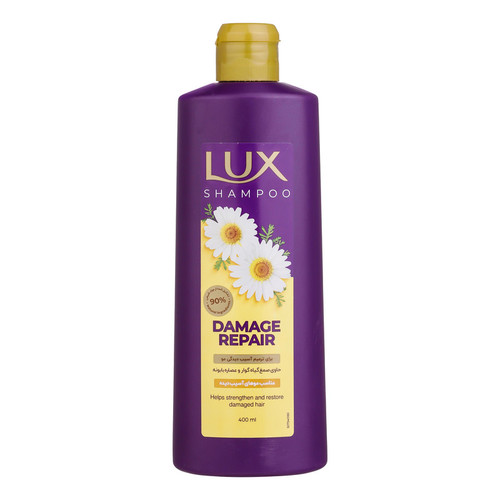 شامپو تقویت کننده و ترمیم کننده مو لوکس، سازگار با موهای آسیب دیده، حاوی صمغ گیاه گوار و عصاره بابونه، با حجم 400 میلیلیتر مدل Damage Repair