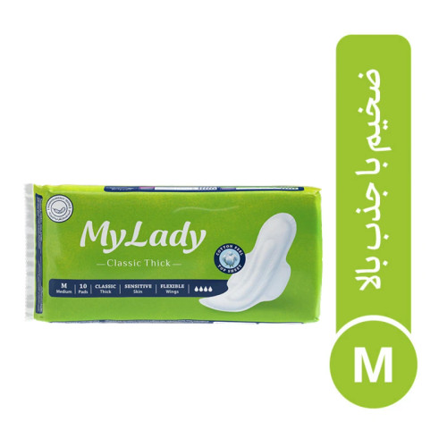 نوار بهداشتی بالدار ضخیم روز و شب مای لیدی مدل Classic Green سایز متوسط بسته 10 عددی
