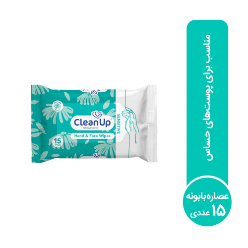 دستمال مرطوب پاک کننده دست و صورت کلین آپ مدل Sensitive بسته 15 عددی