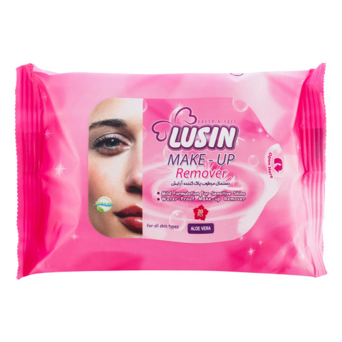دستمال مرطوب پاک کننده آرایش لوسین مدل آلوئه ورا بسته 20 عددی