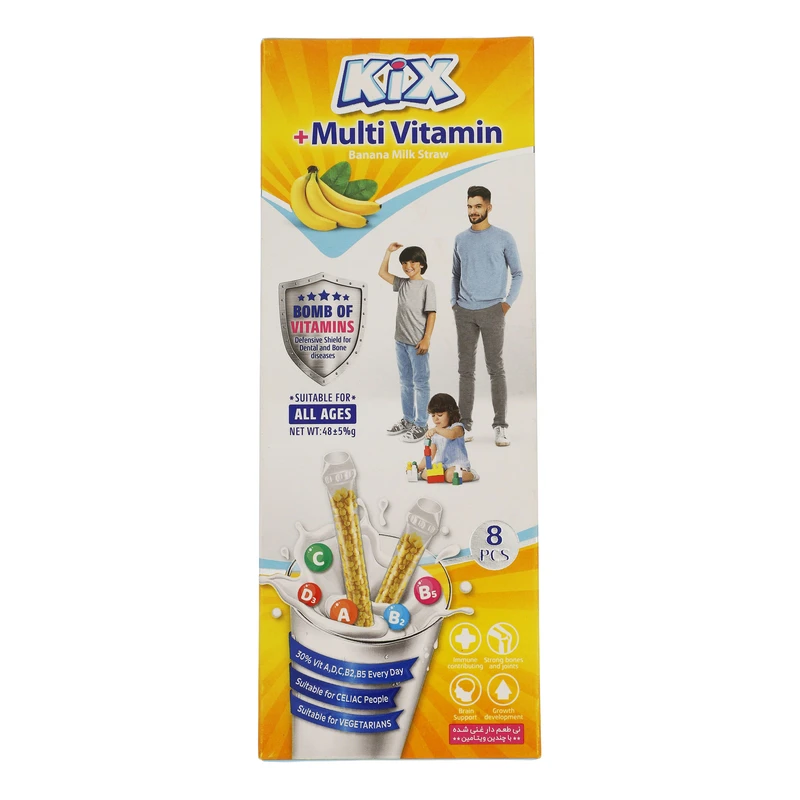 نی طعم دهنده شیر مولتی ویتامین با طعم موز کیکس بسته 8 عددی