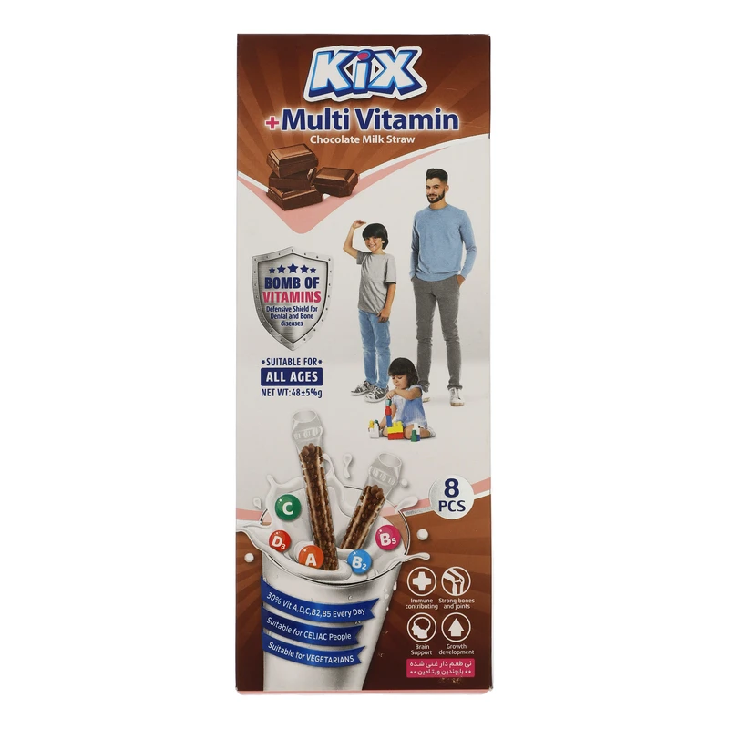 نی طعم دهنده شیر مولتی ویتامین با طعم شکلات کیکس بسته 8 عددی