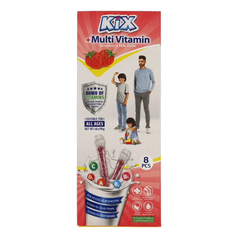 نی طعم دهنده شیر مولتی ویتامین با طعم توت فرنگی کیکس بسته 8 عددی