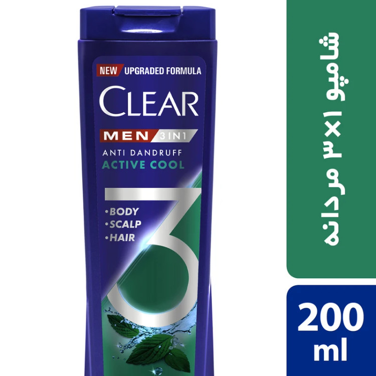شامپو ضد شوره آقایان کلییر مدل خنک کننده فعال 3x1 حجم 200 میلی لیتر