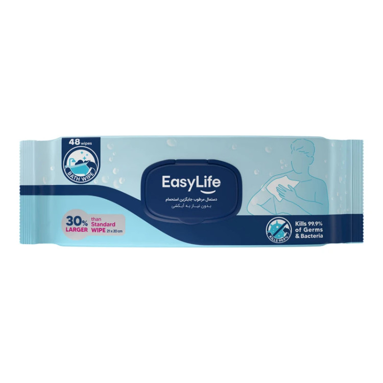دستمال مرطوب ایزی لایف مدل جایگزین استحمام بسته 48 عددی